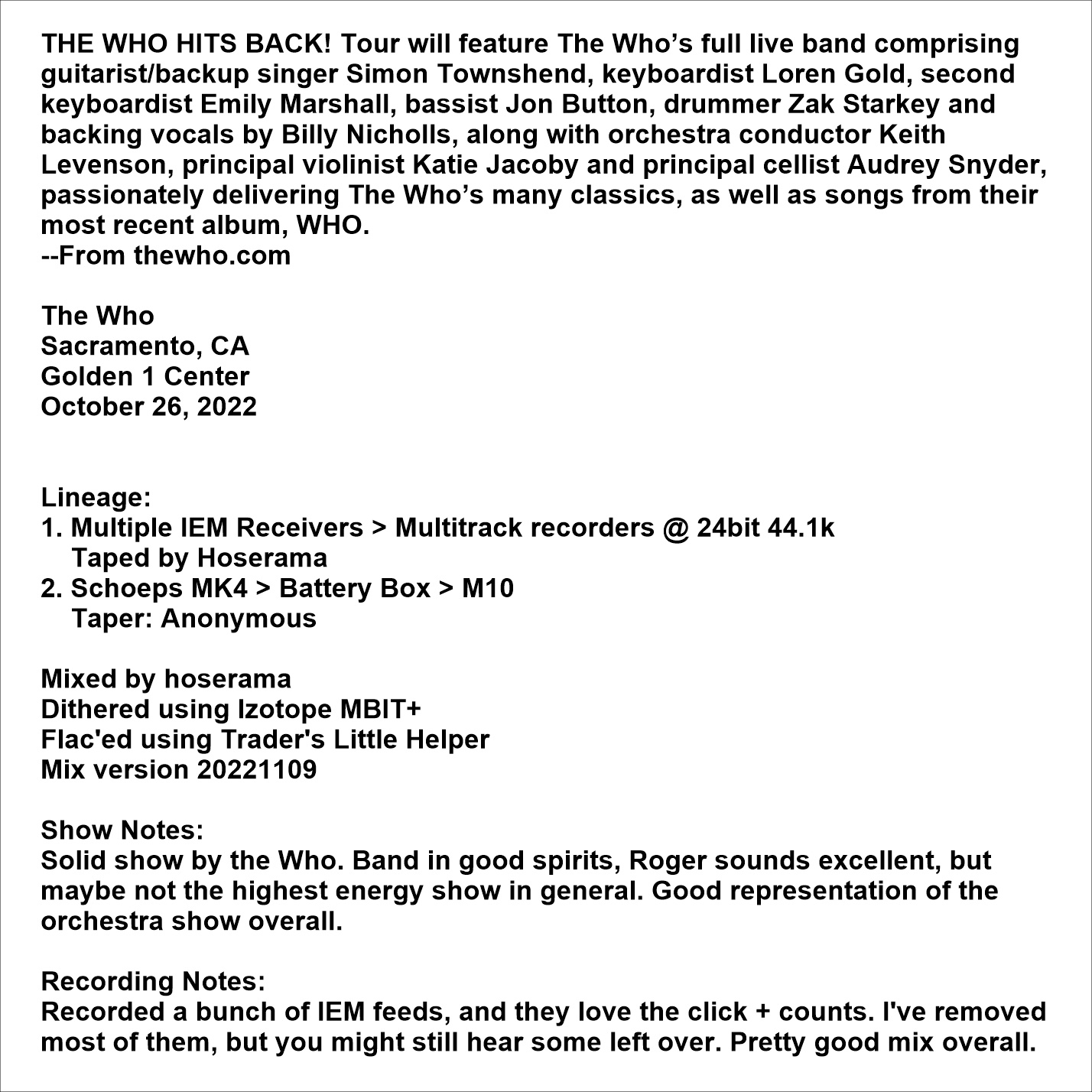 Note: Artwork incorrectly states "Recorded live in San Francisco"